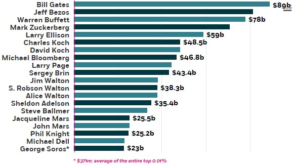 フォーブス400の純資産ランキングで最も裕福なアメリカ人20人、2017年