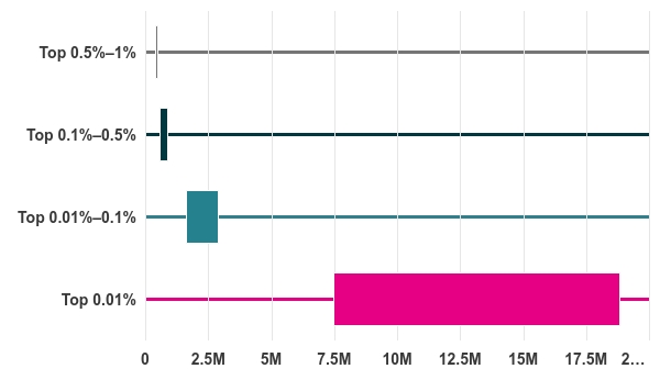しかし、データは1パーセント以内の格差も明らかにしている。結局のところ、1 パーセントにはそれぞれの 1 パーセントがあるのです。